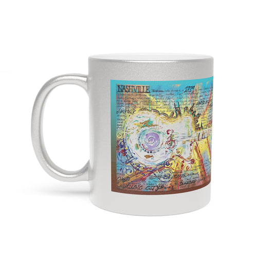 Colorful Nashville Guitar Metallic Mug - Silver - Perfect Gift for Music Lovers