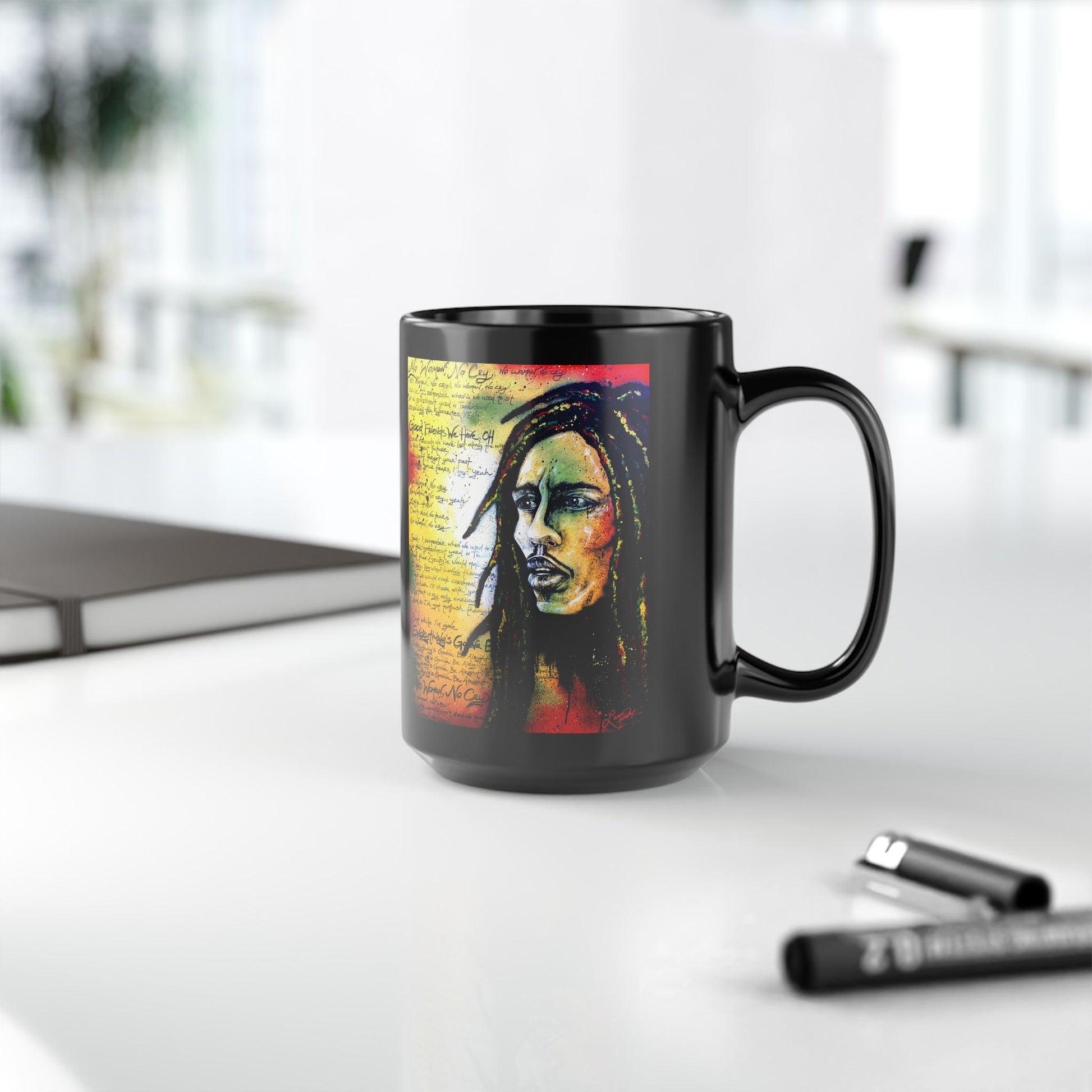 Marley Coffee Tea Mug, Reggae Painting, Jamaica Artistic Musical black cup 15oz